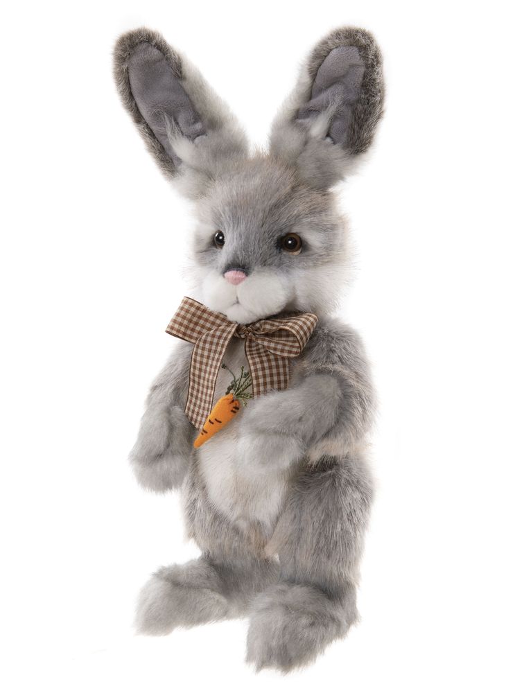 You will love this handsome bunny named Broccoli who is made of the softest plush in gray and white. He is adorned with a gingham ribbon and a carrot pendant. You will fall in love with his beautiful ears, his hand-stiched nose and lovely eyes.