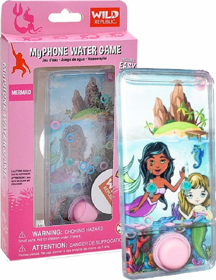 Press the plunger to push the rings through the water and onto the posts. Sounds easy but can take lots of fun filled practice. These water games, one of Wild Republics most popular toy items, are shaped like a cell phone, has a hand holder, and requires no batteries. Available in several themed designs to fit your child's interest.