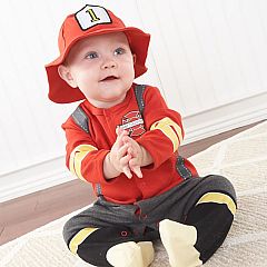 Baby Aspen inspires those big dreams with our Baby Firefighter layette set! Sporting "suspenders, "boots" and an absolutely adorable hat, this outfit will be a five-alarm favorite down at the fire station!