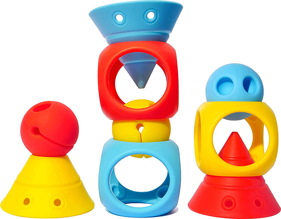 Meanwhile, every single part of this 9-piece set is made entirely of soft silicone - so you know it's safe for the littlest explorers, it's silent for playtime anywhere (even at church or in the library!), and there are no sharp edges for parents to accidentally step on! Early childhood becomes filled with endless discoveries with the Moluk Building Genius set.