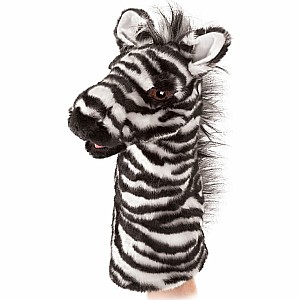 The Zebra Stage Puppet features an easily animated mouth and lots of expression! Design details include a leatherette nose, soft vintage-look plush with beautiful striping and a distinctive black and white mane.
