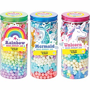 If making friendship bracelets is your "jam" these bead jars are just what you need. Choose your favorite theme or try them all.Each jar comes jam-packed with beads and 10 yards of jelly cord. Special beads include sparkle and iridescent. Spell your feelings with the fun alphabet beads included.Featuring an array of bead sizes and colors, perfect for big and little crafters. Makes 40+ bracelets.