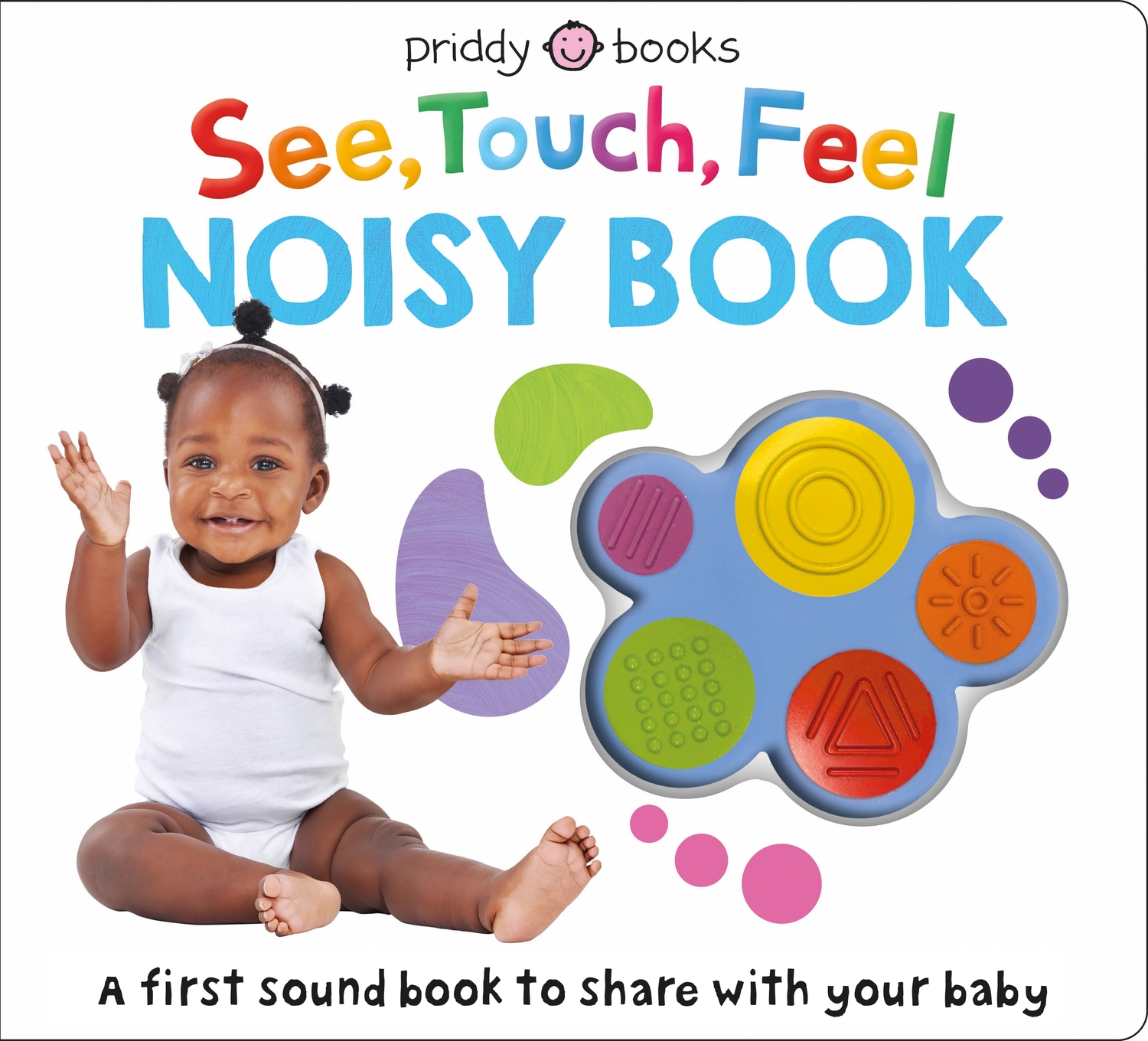 Young children will love pressing the textured sound buttons and listening to the engaging noises with See, Touch, Feel Noisy Book by Priddy Books!This bright and bold concept sound board book is full of engaging noises that are sure to delight toddlers as they interact with the innovative pages. The colorful 5-button sound module is made from super-soft silicone and features a unique textured design which stimulates little hands as they explore. Firmly embedded in the back cover, the sound module is die-cut through the whole book which makes pressing the buttons easy and fun. Each page is filled with abstract images, classic See Touch Feel-style artwork and lots of happy tots. Babies are encouraged to explore the pictures and press the buttons to hear the fun sounds.