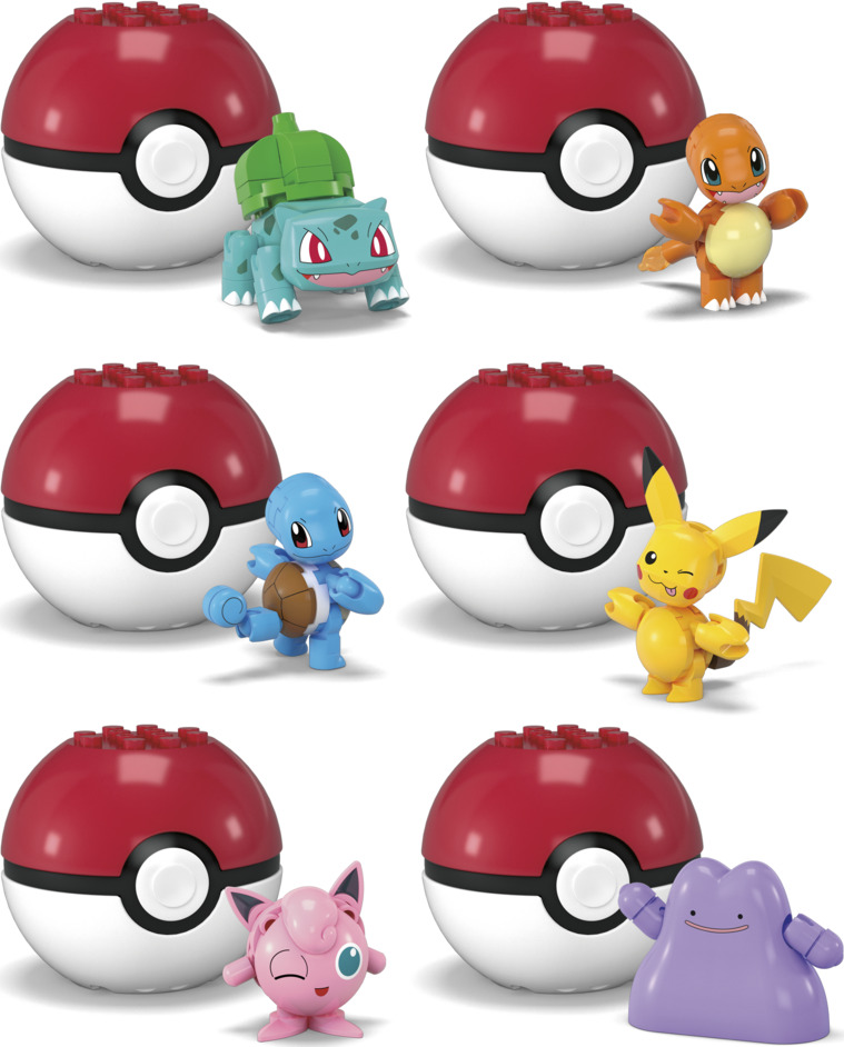 Head back to where it all began with 6 buildable Pokémon figures!Build the power that's inside with 6 buildable Pokémon, including the first partner Pokémon from the Kanto region! Each figure comes in its own Poké Ball that doubles as a display stand. Choose your favorite Pokémon from Bulbasaur, Charmander, Squirtle, Pikachu, Jigglypuff and Meowth, and build each Pokémon in the series! Each sold separately. Characters, themes, and details may vary. Ideal for ages 6+.
