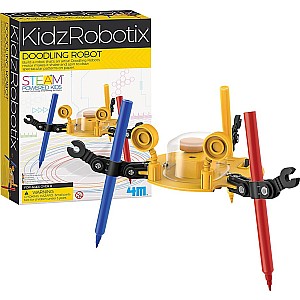 The 4M Doodling Robot uses vibration and spin generated by its motor to create works of art. Adjust the angle and height of the robot's colored pens and watch it work.