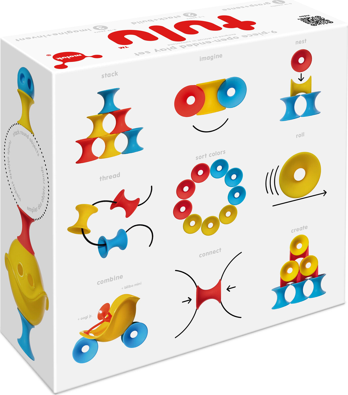 Roll them, stack them, nest them, sort them, and combine them with all your other toys. You can build them into a castle, arrange them into a smile, or even turn them into a modern work of art. Plus, made of 100% silicone, they're soft, safe, and silent, so kids AND parents are happy. What will you do with Tulu?