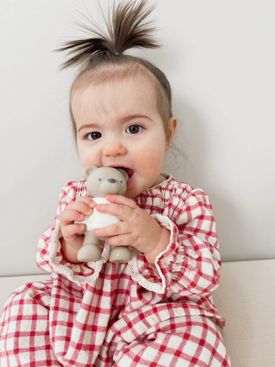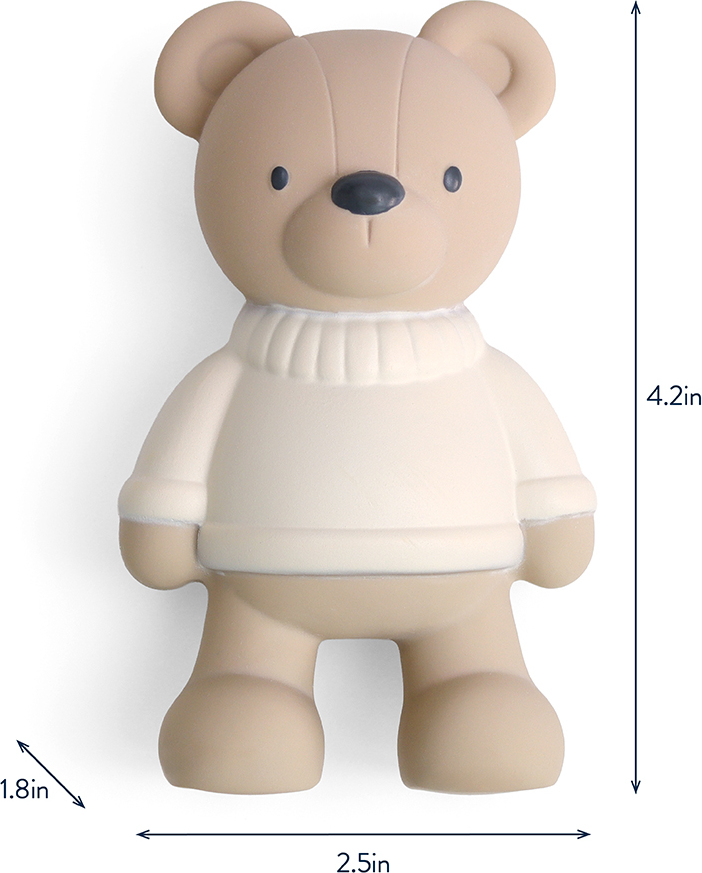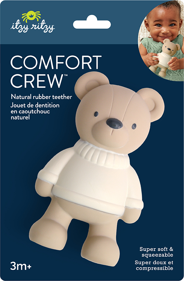 Chew on this! Babies will experience pure relief with our natural rubber Comfort Crew™! This soft squeezable teether is designed to massage and soothe sore gums the natural way, pure and simple!